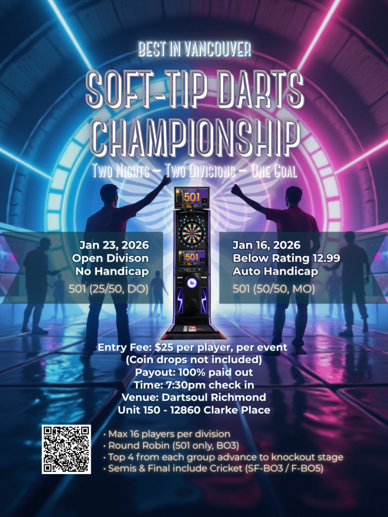 • Final (Best of 5): 501, Cricket, Cricket, 501, Choice